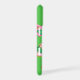 Vintage illustration Christmas holiday design featuring a cute pink cat wearing a Santa hat and a pink collar with bells. This adorable furry feline is holding a Christmas wreath and has a red ribbon hanging from her tail. Stars sparkle on the green background.