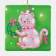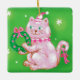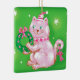 Cute Cartoon Christmas Cat Holding Wreath Ceramic Ornament