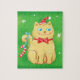 Cute Cartoon Christmas Cat with Santa Hat Jigsaw Puzzle