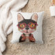 A cute cartoon cat in heart shaped diagonal striped red eyeglasses.