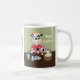 A fun Easter mug with a cartoon cow painting some Easter eggs . Personalise it with a name .
