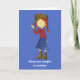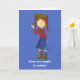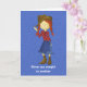 This cute cowgirl birthday card features a graphic of blue denim in the background. A cute little cowgirl with red hair is front and centre. Feel free to customise the text to suit your princess.