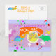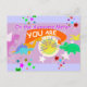 Cute Cartoon Dinos On the Awesome Metre You Are Super Amazingly Awesome Postcard. Super cute cartoon dinosaurs pink purple T-Rex, blue Stegosaurus, orange Diplodocus, green Triceratops and yellow flying Pteranodon are looking on the awesome metre, it is saying YOU are "Super Amazingly Awesome" with lots of colour stars and pink background colour postcard. This funny and cool you are awesome postcard is fully customisable, add your texts and images! A great cute cartoon animals card fot the big little dino fans!