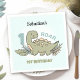 Cute Cartoon Dinosaur Blue Green Boy 1st Birthday Napkin
