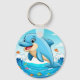 Cute Cartoon Dolphin Splashing in Water Key Ring
