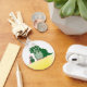 A cute pair of green dragons with pink accents on a yellow and white background.