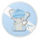 Cute cartoon elephant on a blue background with white polka dots children's cute blue-white new baby .