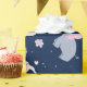 Cute cartoon elephants pattern on navy-blue wrapping paper
