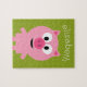Cute Cartoon Farm Pig - Pink and Lime Green Jigsaw Puzzle