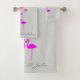 Cute Cartoon Flamingos In Love -Personalised Bath Towel Set