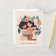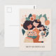 Cute cartoon floral mum and girls. Mothers Day Postcard