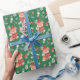 Cute cartoon fox wrapping paper personalised with a name or any custom text. Great to gift wrap your presents for Christmas or the Holidays, featuring cartoon animals and winter illustrations in red and green colours.
