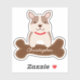 Cute Cartoon French Bulldog Puppy Dog Bone Custom Name Sticker