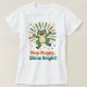 Bring joy with this cute cartoon frog with mushroom hat t-shirt - playful minimalist vector art featuring the quote "Hop Happy, Shine Bright!". Soft muted greens and golden accents create a charming, feel-good tee perfect for gifts. Shop now.