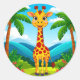 Cute Cartoon Giraffe in a Tropical Landscape Classic Round Sticker