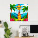 Cute Cartoon Giraffe in a Tropical Landscape Poster