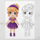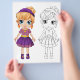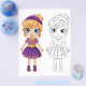 Cute cartoon girl colouring page for kids activity