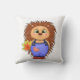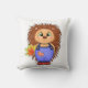 Cute cartoon hedgehog with autumn leaves. cushion