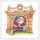Cute Cartoon Jolly Santa Claus Coming Down Chimney Square Sticker