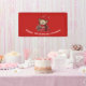 Birthday banner with a cute drawing of a little kitten poking its head out of a gift box.