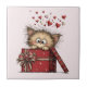 Cute Cartoon Kitten with Hearts Tile