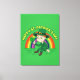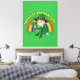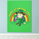 Canvas Printwith an Illustration of a cute smiling leprechaun wearing a green suit, a top hat while holding a shamrock leaf, with a colourful rainbow in the background and text saying "Happy St. Patrick's Day"