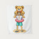 Cute Cartoon Man with Giant Teddy Bear Summer Fun Tapestry