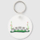 Cute Cartoon Mice on Grass with Flowers Key Ring