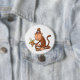 Happy Chimp Cartoon Monkey Button. Pin this fun small button featuring a smiling primate eating a tropical fruit to your jacket, bag, or lanyard. This affordable accessory is great for party favors, gift add-ons, or showing off your love for this adorable illustration and jungle animal character. The peel banana brown mascot design adds a touch of safari theme flair.