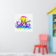 Purple, yellow, mint green, blue funny Kawaii Octopus playing a guitar under water.