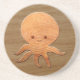 Cute Cartoon Octopus With Faux Wood Print Coaster
