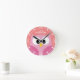 Cute Cartoon Owl in Pink and Coral Round Clock