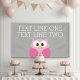 Cute Cartoon Owl - Pink and Grey Custom Name Banner
