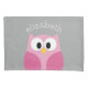 Cute Cartoon Owl - Pink and Grey Custom Name Pillowcase