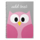 Cute Cartoon Owl - Pink and Grey Custom Name Spiral Notebook