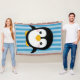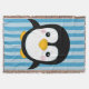 Cute Cartoon Penguin Design Blue Stripes Pattern Throw Blanket