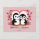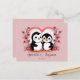 Send a heartwarming message with our delightful holiday postcard, featuring two adorable cartoon baby penguins in love, surrounded by flowers and hearts against a charming pink background. The endearing design captures the essence of love and the festive spirit of Valentine's Day. Personalise the postcard with your names and the date, adding a unique and heart-touching expression of your affection. Whether you're sending warm wishes or a love note, let this enchanting postcard carry the joy of your penguin couple. Share the sweetness and warmth of your connection with this delightful design. Happy sending and Happy Valentine's Day!