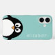 Cute Cartoon Penguin Pastel Teal Blue Modern Name Case-Mate iPhone Case