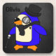 Cute cartoon penguin stylish black stone coaster
