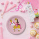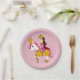 Paper Plate with an illustration of a happy princess wearing a pink dress riding a pony, nice present for little girls and a great decoration for a nursery or girl's bedroom