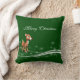 Cute Rudolf the red nosed reindeer on a festive green background with a snowy bottom embellishment. Cute and fun Christmas design for your Christmas throw pillows.