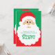 A fun design for inviting family and friends to your upcoming Christmas Party, featuring a cute cartoon Santa Claus on a green background with polka dots. The information on both sides of the invitation are fully customisable for the details of your own Christmas Celebration.