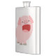 The product is a good size and came exactly as it was pictured. The lid is not attached to the flask, which could be dangerous on drunken nights... The print came out surprisingly well and looks very sharp. Would definitely recommend.