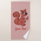 Customisable Bath Towel with an illustration of a cute red squirrel holding a peanuts, a cute animal design for kids by Maxi Harmony