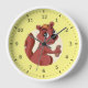 Clock with an illustration of a cute red squirrel holding a peanuts, with a beige circle on a brown background, a cute animal design for kids by Maxi Harmony