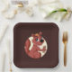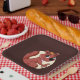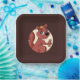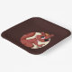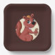 Square paper plates with an illustration of a cute red squirrel holding a peanuts, with a beige circle on a brown background, a cute animal design for kids by Radka Kavalcova