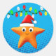 Cute Cartoon Starfish Santa Hat Christmas Lights Classic Round Sticker