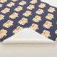 Cute cartoon tan cow with white spots pattern over a white sherpa fleece blanket.