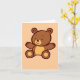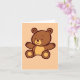 A cute smiling cartoon teddy bear sits down with its arms raised, ready to be picked up.