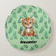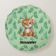 Cute Cartoon Tiger on Tropical Leaves Round Cushion